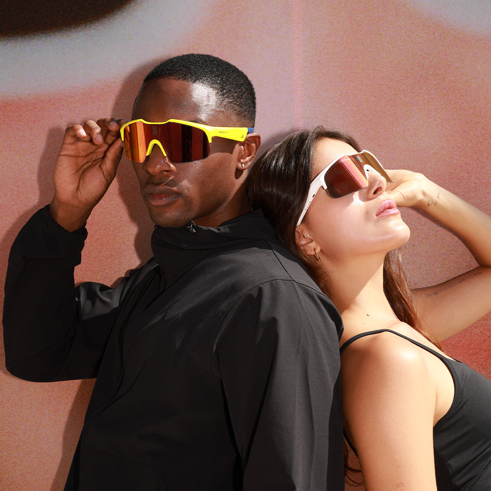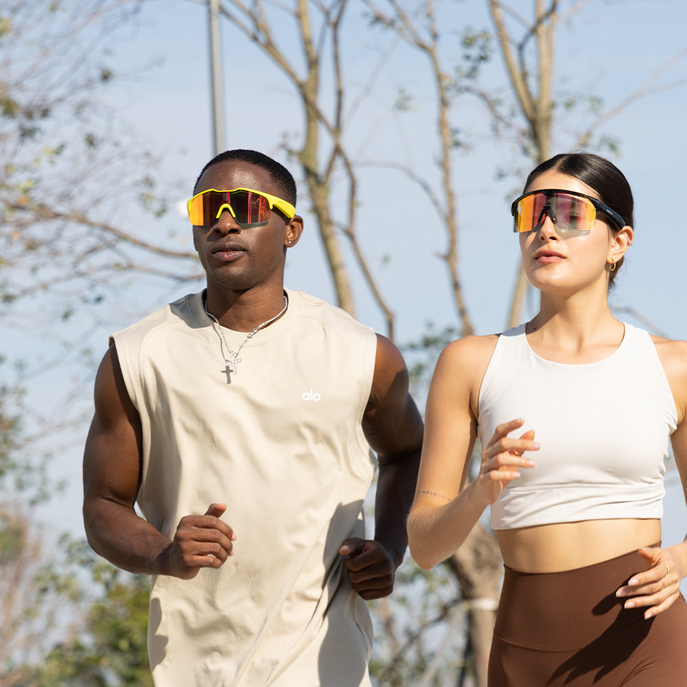 Absolutely! These sunglasses are designed for cycling, running, and other high-intensity sports. They are lightweight, fit securely to the head, and won’t slip off or pinch. They are built to handle most weather conditions but are not waterproof. Swimming or submerging them in water may cause damage.